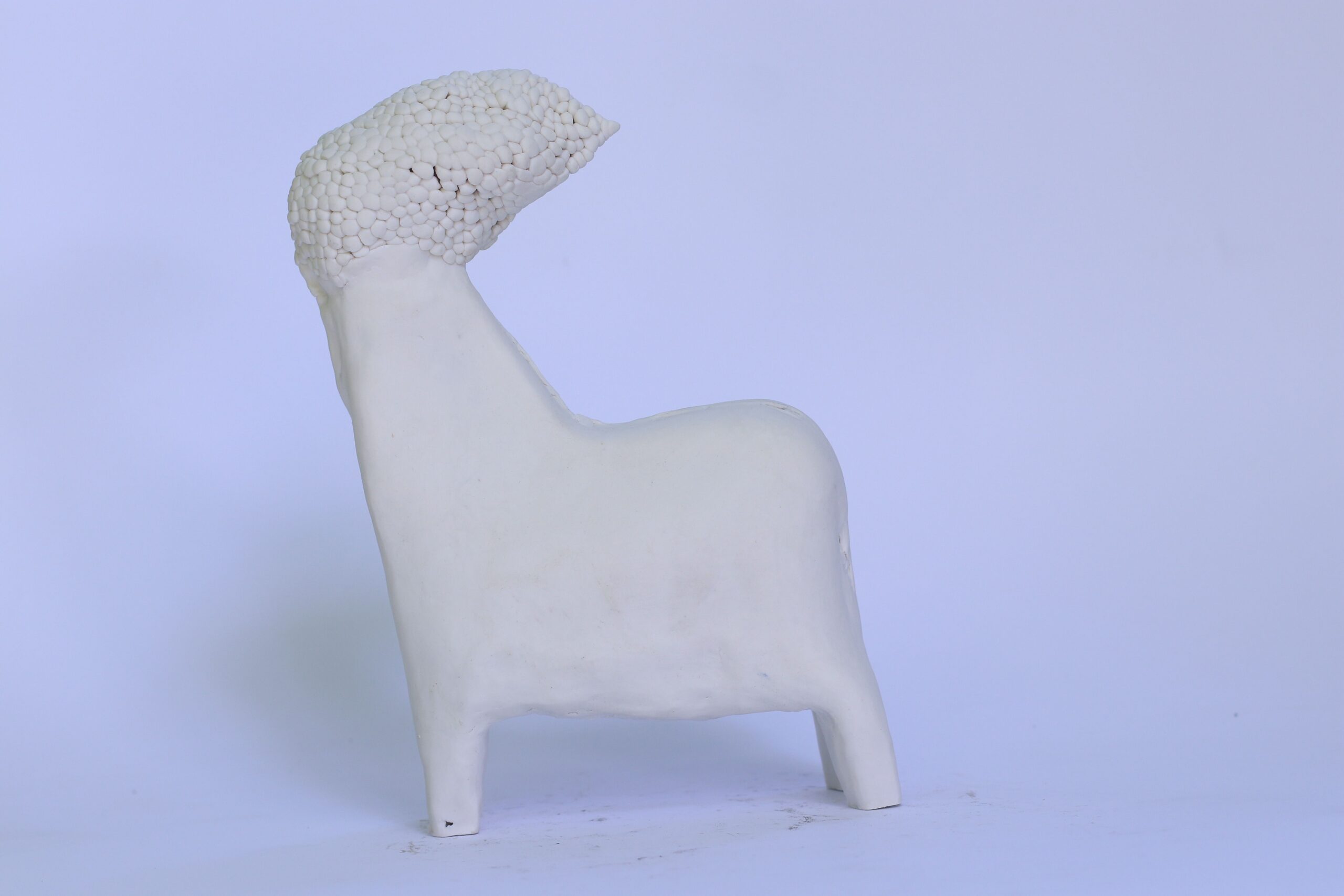 Tricks —small sculptures made of porcelain and/or clay, created using a salvaged mold of a horse from the now-defunct Krzysztof Porcelain Factory in Wałbrzych. Once used to produce figurines for the Swedish retail chain IKEA, the mold finds new life in Trzybulska’s hands. The porcelain factories of Lower Silesia—Książ, Krzysztof, Wałbrzych, and Karolina—have played a pivotal role in her artistic journey. It was within their walls, during the “Porcelain Differently” plein-air workshops and individual visits, that the artist learned the material, experimented, and shaped her own visual language. Although each trick originates from the same rescued mold, every piece is treated individually, revealing a wide range of techniques, formal solutions, and Trzybulska’s signature approach to ceramic expression.