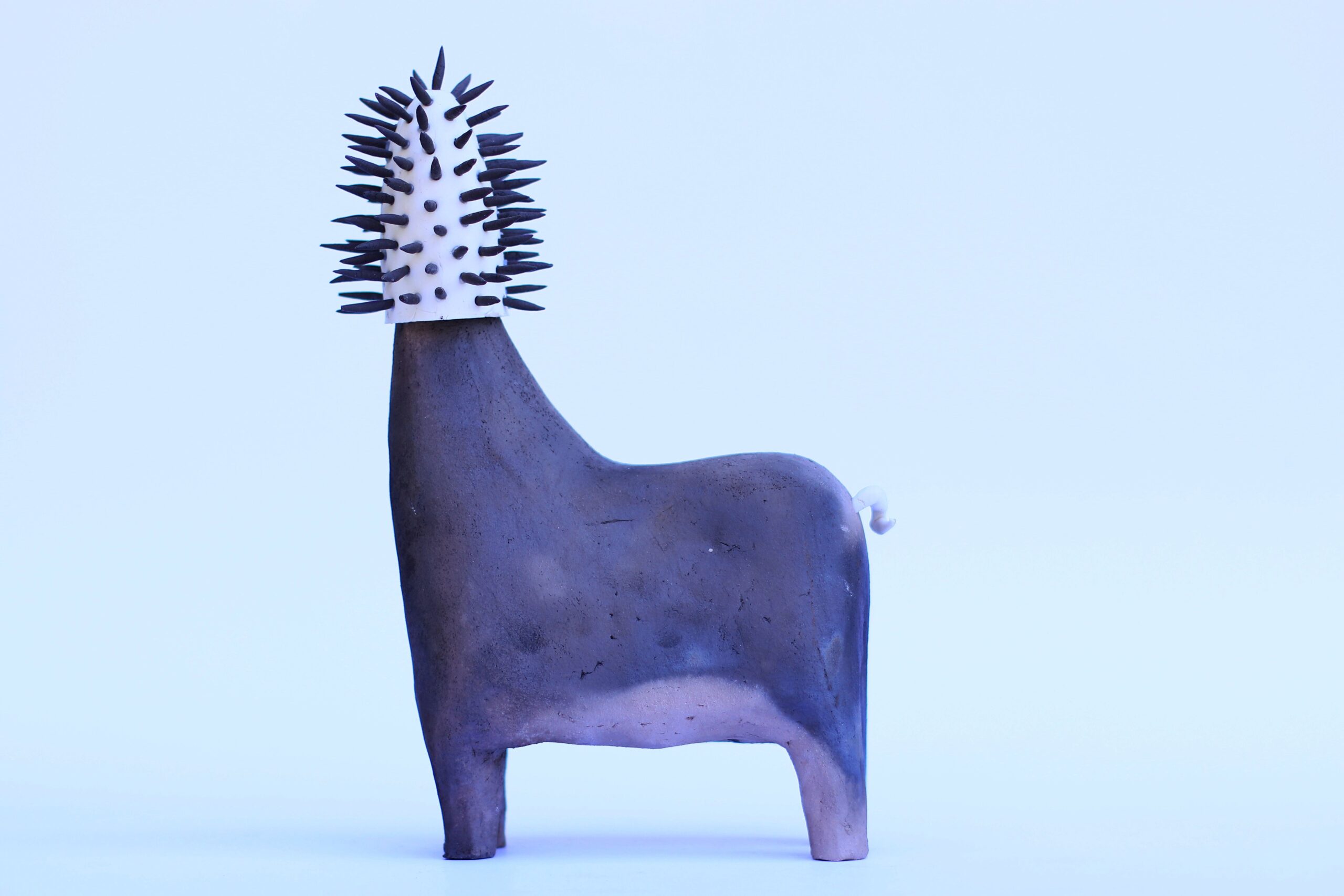 Tricks —small sculptures made of porcelain and/or clay, created using a salvaged mold of a horse from the now-defunct Krzysztof Porcelain Factory in Wałbrzych. Once used to produce figurines for the Swedish retail chain IKEA, the mold finds new life in Trzybulska’s hands. The porcelain factories of Lower Silesia—Książ, Krzysztof, Wałbrzych, and Karolina—have played a pivotal role in her artistic journey. It was within their walls, during the “Porcelain Differently” plein-air workshops and individual visits, that the artist learned the material, experimented, and shaped her own visual language. Although each trick originates from the same rescued mold, every piece is treated individually, revealing a wide range of techniques, formal solutions, and Trzybulska’s signature approach to ceramic expression.