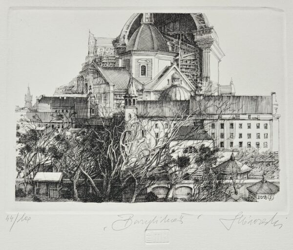 Rysunek Moniki Cichoń. Wykonany ołówkiem na barwionym papierze.